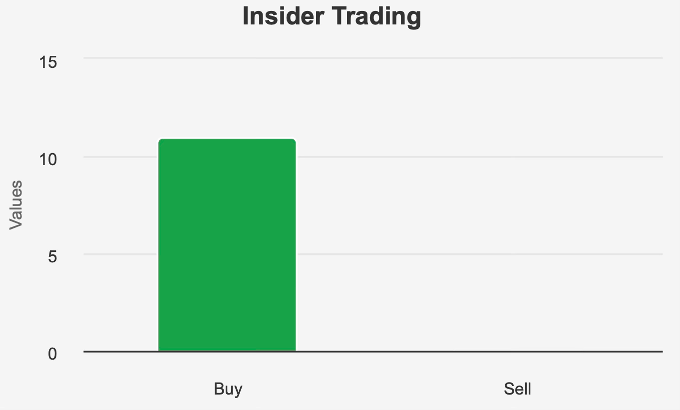 Insider behavior provides a counterpoint. Over the past twelve months, 11 insider buy transactions were recorded, with no selling activity. Seven purchases occurred in the past six months and three within the last three months. Insider ownership stands at 1.88%, complemented by institutional ownership of 111.71%. This alignment suggests internal confidence despite capital structure concerns.
