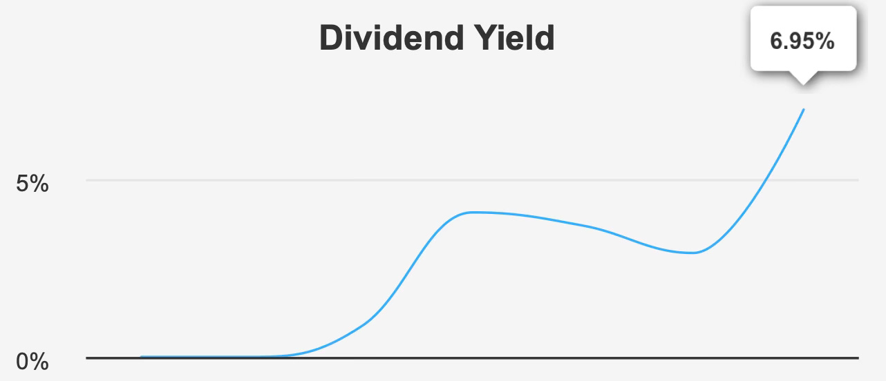 While the forward dividend yield of 7.3% appears attractive, sustainability metrics are deeply strained. A payout ratio of 757.0%, combined with weak coverage and elevated leverage, undermines confidence in the durability of the income stream. The yield is high for a reason.