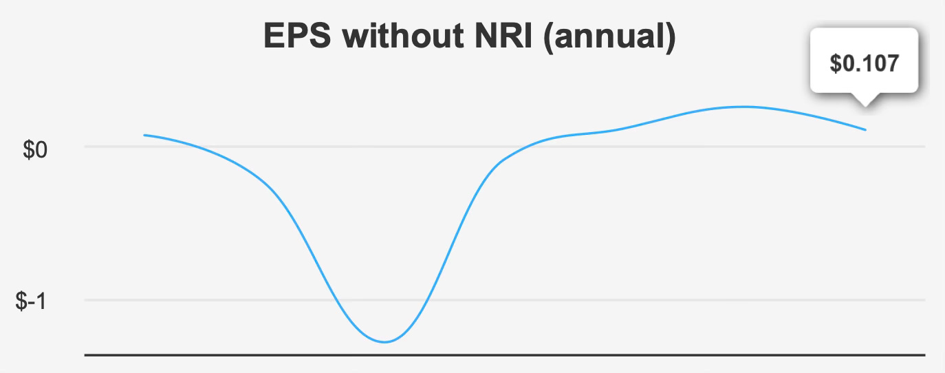 However, earnings quality remains inconsistent. EPS excluding non-recurring items declined to -$0.002 in the latest quarter, down from $0.023 in the previous quarter and $0.042 a year earlier. Diluted EPS came in at $0.01, compared with $0.02 sequentially and $0.04 year over year. Over both five- and ten-year periods, annual EPS growth has remained flat at 0.0%, underscoring the absence of sustained profitability expansion.