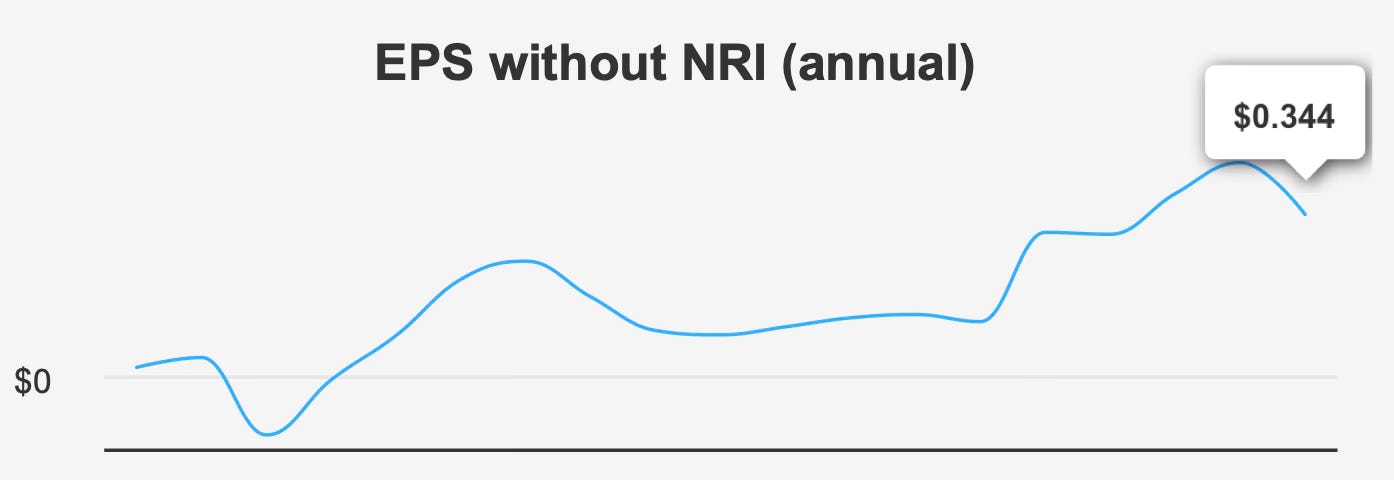 In the most recent reported quarter ending September 2025, earnings per share excluding non-recurring items reached $0.12. This represents a substantial improvement from $0.058 in the preceding quarter, though it remains below the $0.16 recorded during the same period a year earlier. The sequential improvement suggests operational recovery following a softer period earlier in the year, but the year-over-year comparison indicates that profitability remains somewhat volatile.