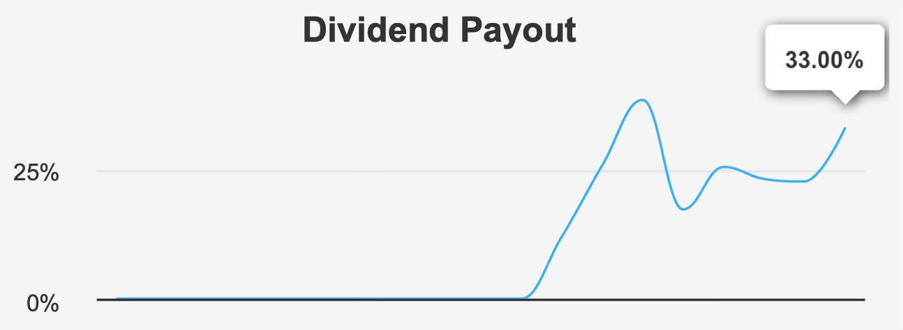 Dividend growth has been particularly impressive. Over the past five years, the dividend has expanded at an annualized rate of roughly 27.2%. Over the past three years, growth has remained strong at approximately 23.8% per share. This record reflects both rising earnings and management’s willingness to return capital to shareholders.