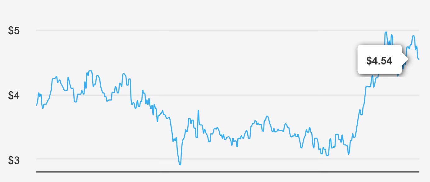 The company’s estimated intrinsic value is approximately $4.54 per share. With the stock trading around $4, the difference between market price and intrinsic value is relatively small, indicating that the shares are essentially fairly valued under current assumptions.