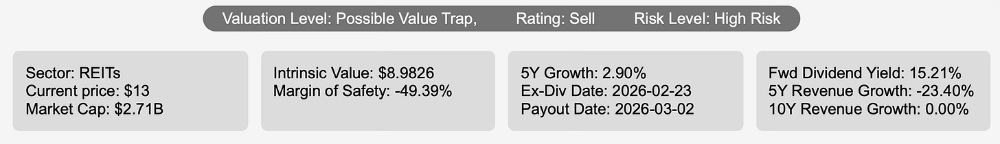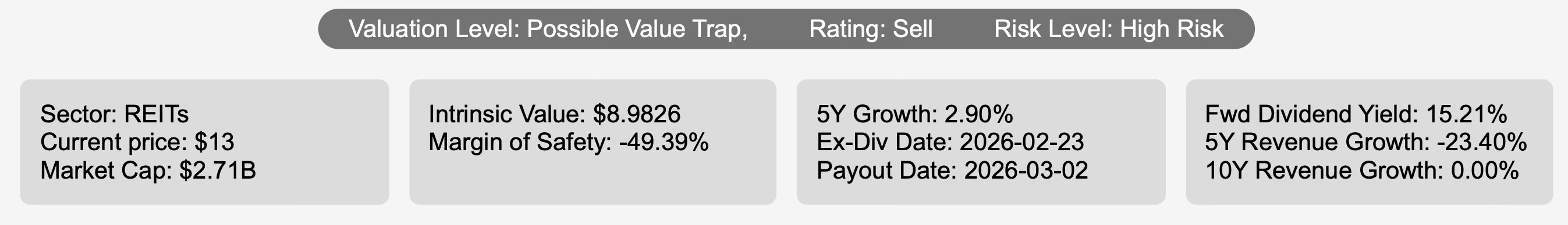 At first glance, such a yield can appear compelling for income-focused investors, particularly within the REIT sector where high distributions are common. However, a deeper examination reveals that the current dividend yield may reflect elevated risk rather than a durable income opportunity. The company’s payout ratio sits at approximately 98%, leaving minimal margin for reinvestment or earnings volatility. With such a narrow buffer, even modest earnings pressure could threaten dividend stability.