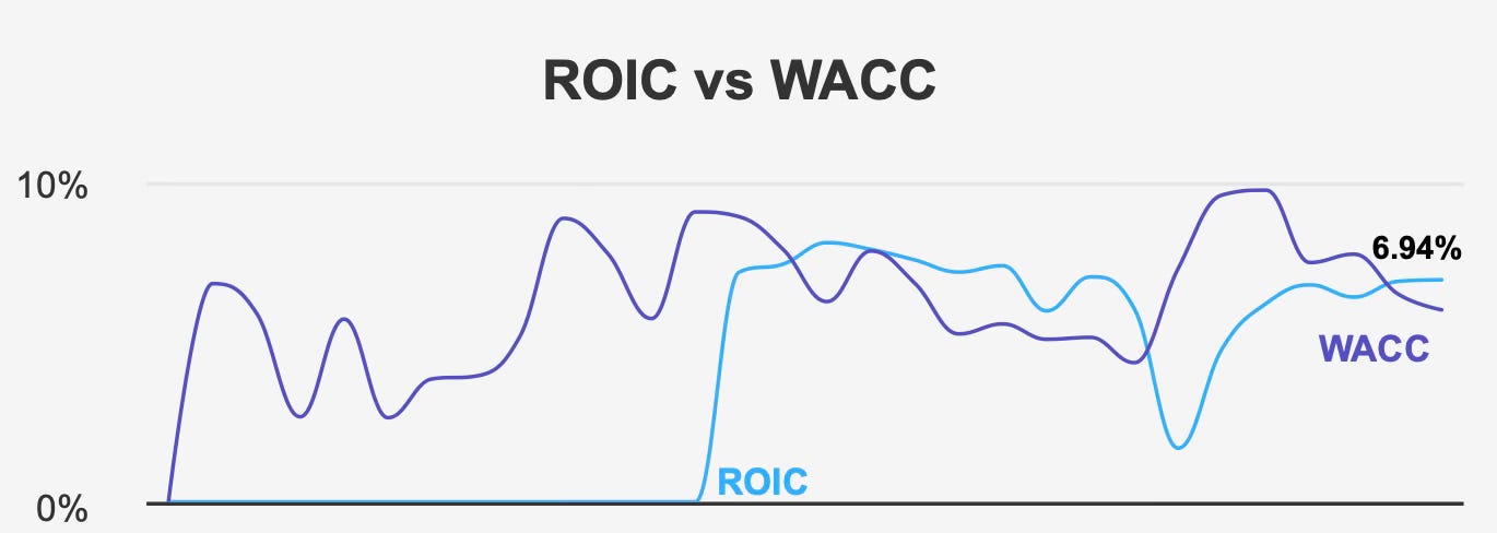 The spread between these two figures is not especially large, but it remains meaningful. Even a modest margin above the cost of capital suggests that new investments are contributing incremental value to shareholders.