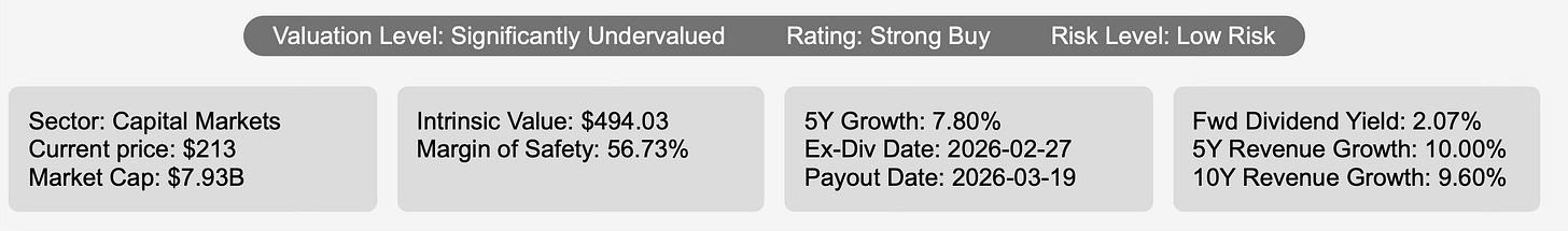 The business model remains structurally attractive. FactSet aggregates data from exchanges, brokerages, third-party providers, and proprietary sources into a unified platform that is deeply embedded in client workflows. Acquisitions such as Portware in 2015, BISAM in 2017, and CUSIP Global Services in 2022 have expanded execution, risk management, and data capabilities, reinforcing the company’s competitive positioning within capital markets infrastructure.