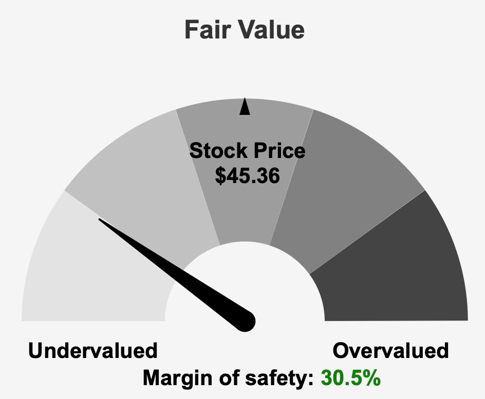 Valuation provides the strongest support for the investment case. At roughly $45 per share versus intrinsic value of $65.27, the equity trades meaningfully below estimated fair value.