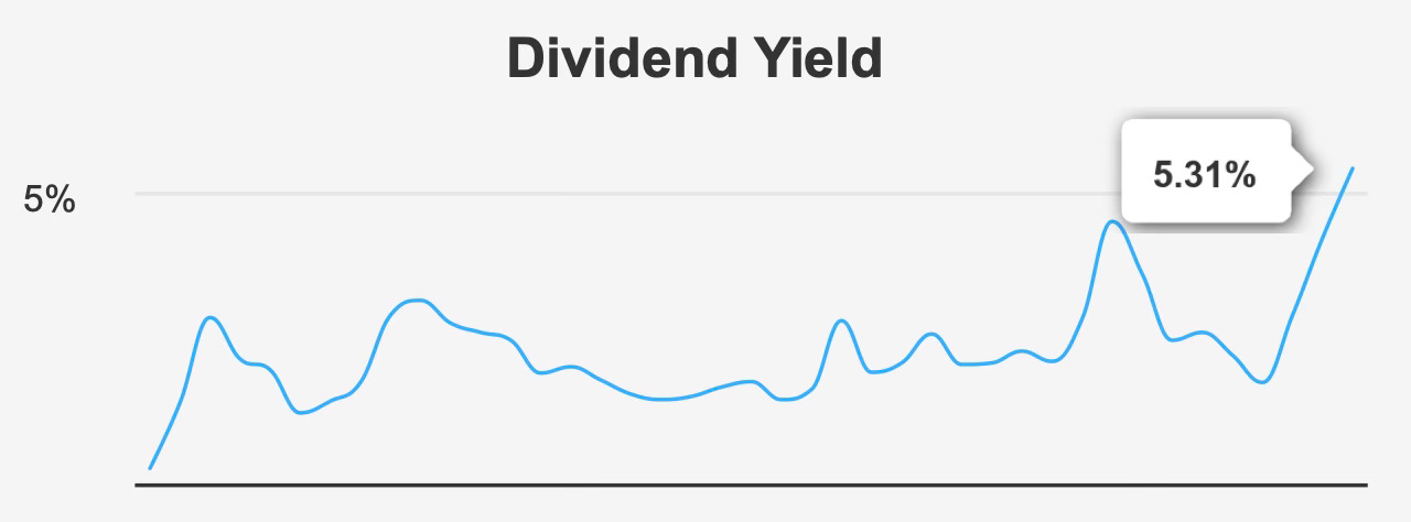 The dividend is the central attraction. The forward yield stands at 5.31%, significantly above the company’s ten-year median of 3.40%, placing the stock among higher-income options within consumer staples.