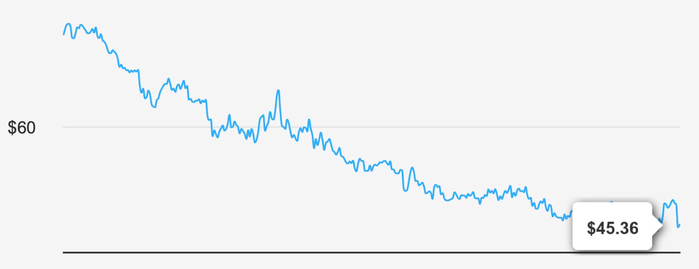 Even analyst expectations reflect muted optimism, with a price target near $50.37 — below intrinsic value estimates but still above the current market price.