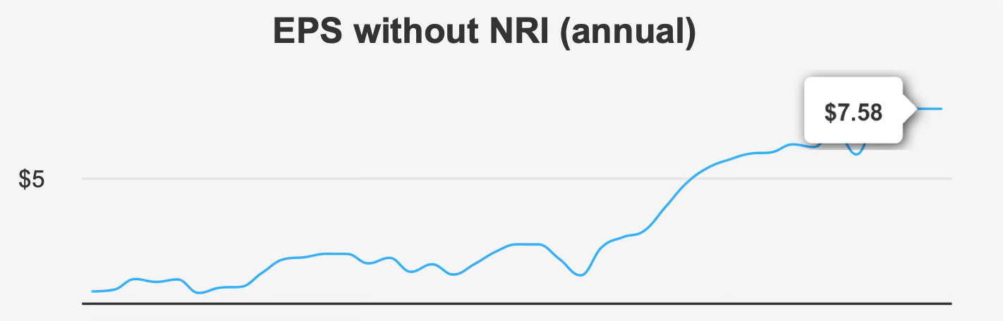 Recent quarterly results reflect near-term earnings variability against a steady longer-term backdrop. EPS excluding non-recurring items came in at $1.51, down from $2.13 in the prior quarter and $1.62 in the comparable year-ago period. Reported diluted EPS was $1.33, compared with $2.00 in the previous quarter. Revenue per share of $17.38 declined from $18.02 sequentially but improved relative to $16.02 a year earlier.