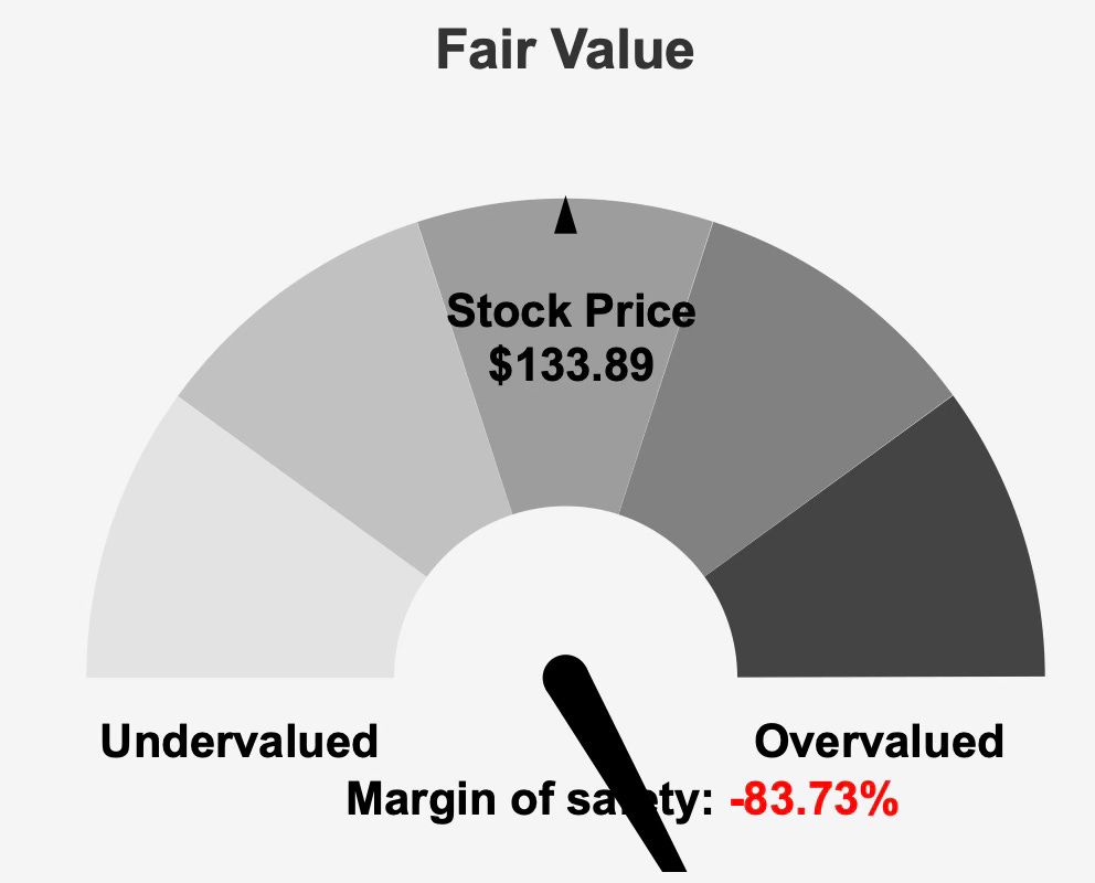 However, the investment case is increasingly defined not by the strength of the enterprise but by the price investors are paying for it. The stock trades around $133 while intrinsic value is estimated at $72.87, implying an 83.7% negative margin of safety.