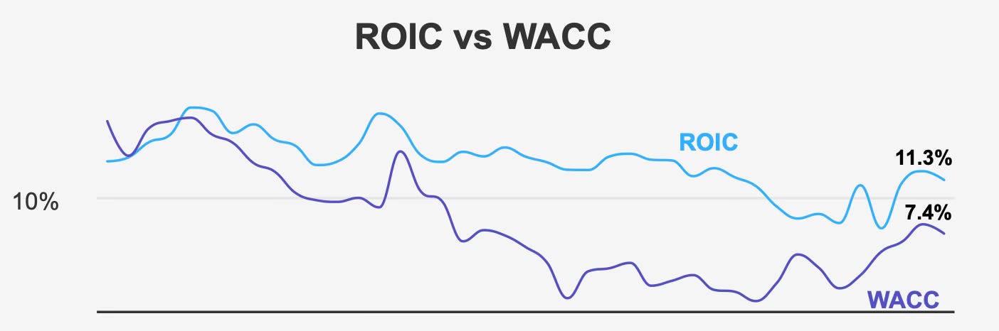 Operationally, Walmart continues to demonstrate economic value creation. Its recent return on invested capital of 11.3% exceeds its weighted average cost of capital of 7.35%, maintaining a healthy spread and confirming disciplined capital allocation. The five-year median ROIC of 10.92% and a five-year median return on equity of 17.37% reinforce a long-standing pattern: Walmart does not grow rapidly, but it compounds reliably.