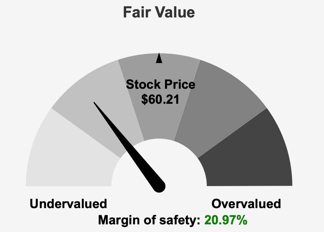 Mondelez trades at a valuation that reflects skepticism around margins and leverage rather than a structural reassessment of the franchise. At around $60, the stock sits roughly 21% below an intrinsic value estimate of $76.2, offering a meaningful margin of safety. This discount is notable for a business with globally entrenched brands and stable demand characteristics.