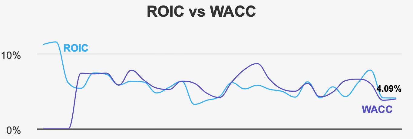 Earnings multiples illustrate the distortion created by near-term margin pressure. The trailing P/E of 32.0x sits well above the 10-year median of 22.3x, but this reflects depressed trailing earnings rather than an elevated share price. The forward P/E of 19.6x presents a more normalized picture, implying that as margins stabilize, the stock’s valuation should revert closer to historical norms.